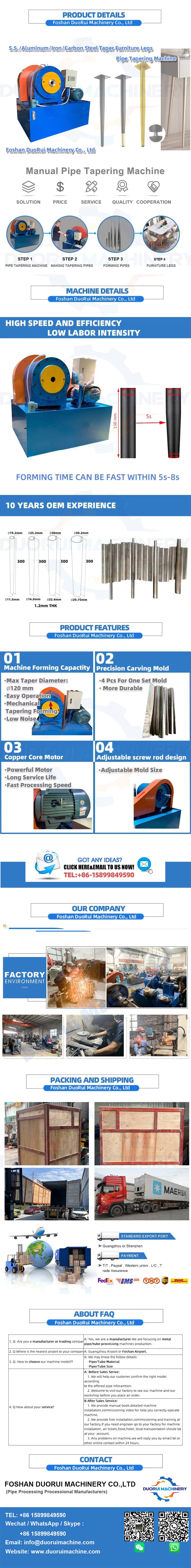 DuoRui Machinery Co.,Ltd specialized in manufacturing cost-effective pipe processing machines, such as pipe embossing machine,rotary swaging machine, pipe end forming machine, pipe tapering machine and other automated pipe processing machines range from simple to complex CNC powered ones.
