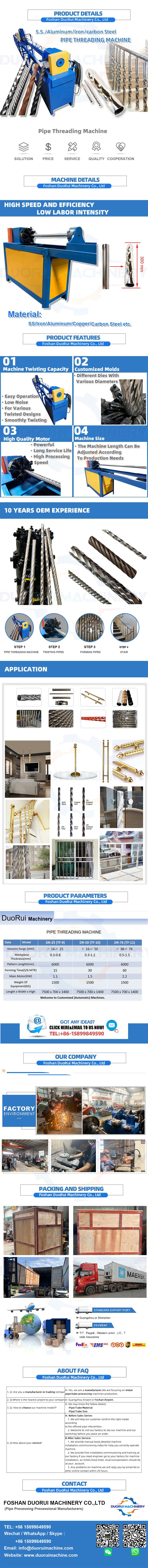 DuoRui Machinery Co.,Ltd specialized in manufacturing cost-effective pipe processing machines, such as pipe embossing machine,rotary swaging machine, pipe end forming machine, pipe tapering machine and other automated pipe processing machines range from simple to complex CNC powered ones.